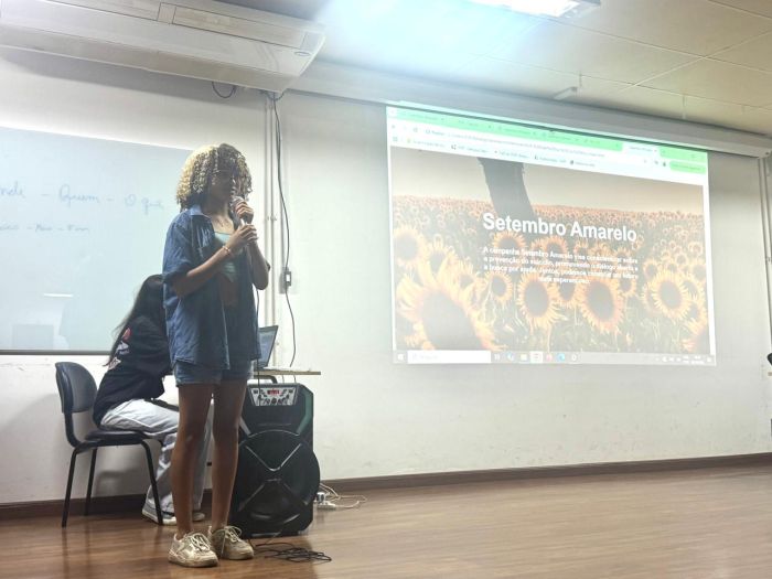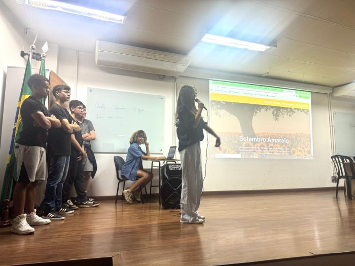 No dia 06/10 a turma do 1º ano do curso Técnico em Informática para Internet Integrado ao Ensino Médio realizou apresentações no auditório do campus marcando o encerramento das atividades sobre o tema Setembro Amarelo. Foi um momento importante de reflexão, troca de experiências e valorização do conhecimento construído coletivamente.
