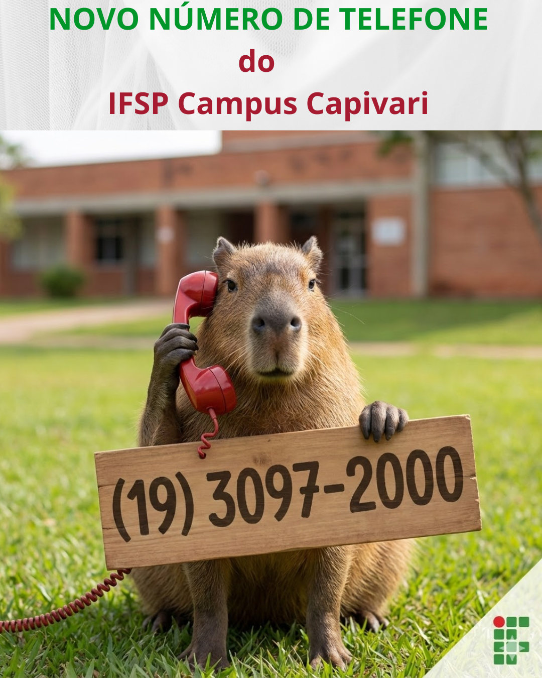 O Instituto Federal de Educação, Ciência e Tecnologia de São Paulo (IFSP) – Campus Capivari informa que seu canal de atendimento telefônico passou por uma atualização. A partir de agora, todas as chamadas direcionadas ao campus devem ser realizadas através do número (19) 3097-2000.