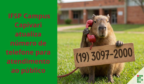 Novo contato telefônico oficial passa a ser (19) 3097-2000. O Instituto Federal de Educação, Ciência e Tecnologia de São Paulo (IFSP) – Campus Capivari informa que seu canal de atendimento telefônico passou por uma atualização. A partir de agora, todas as chamadas direcionadas ao campus devem ser...