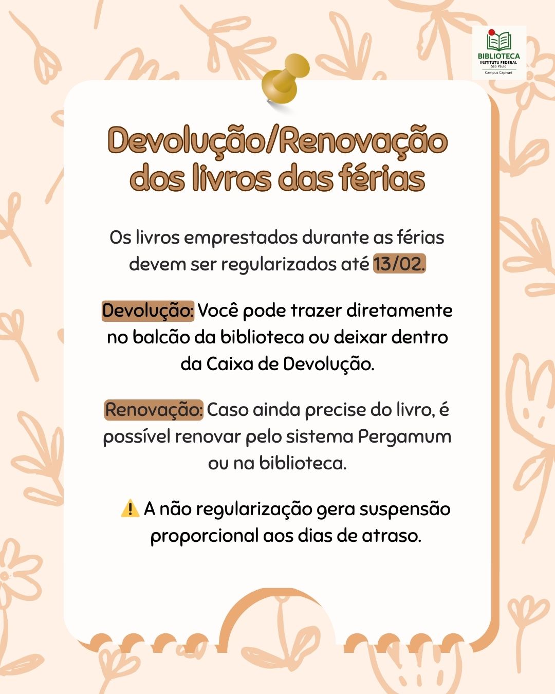 CBI - Devolução de livros — Empréstimo de férias