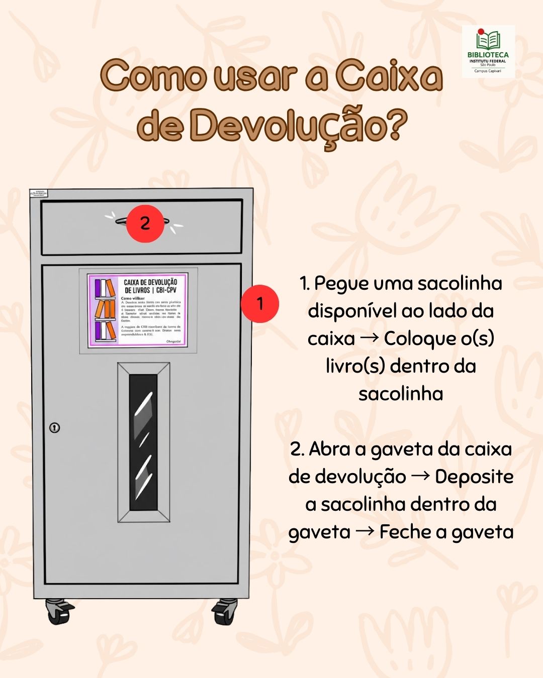 Para maior praticidade, é possível utilizar a Caixa de Devolução da biblioteca. O procedimento é rápido e pode ser feito sem necessidade de atendimento no balcão.